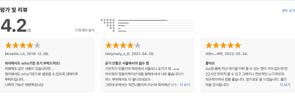 커뮤니티 기능: 사용자들끼리 미세먼지에 대한 정보를 나누고 경험을 공유할 수 있는 커뮤니티 기능을 제공하여 미세먼지 관리에 대한 정보 교류가 가능합니다.